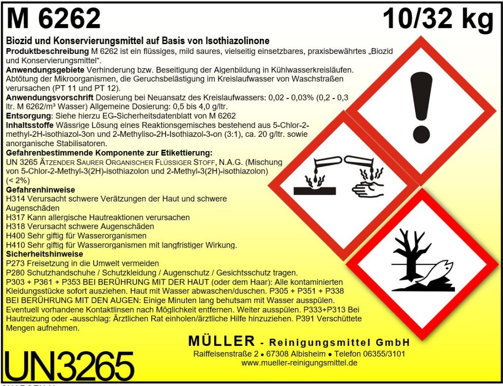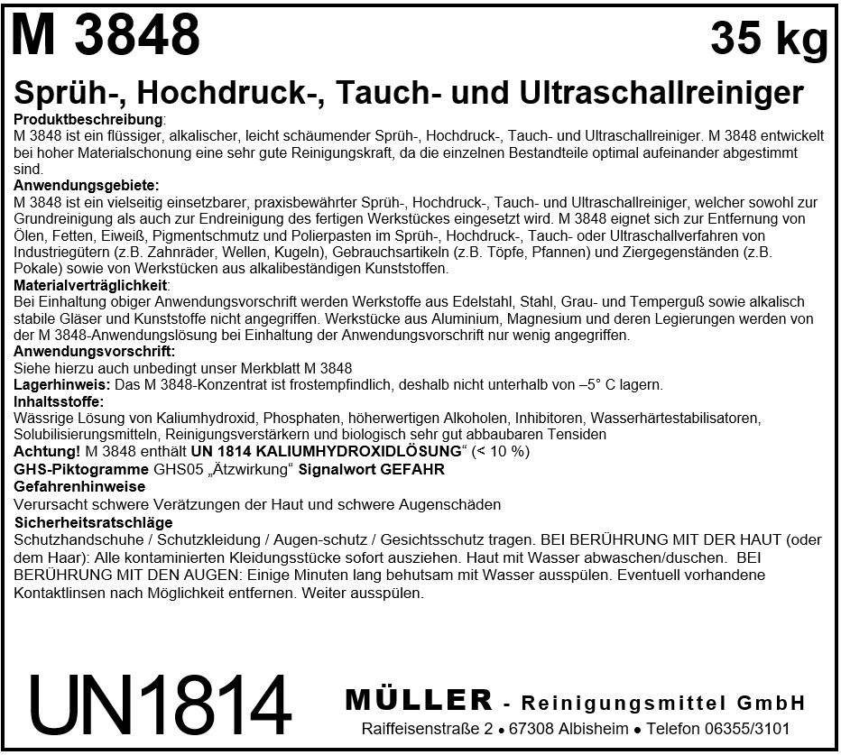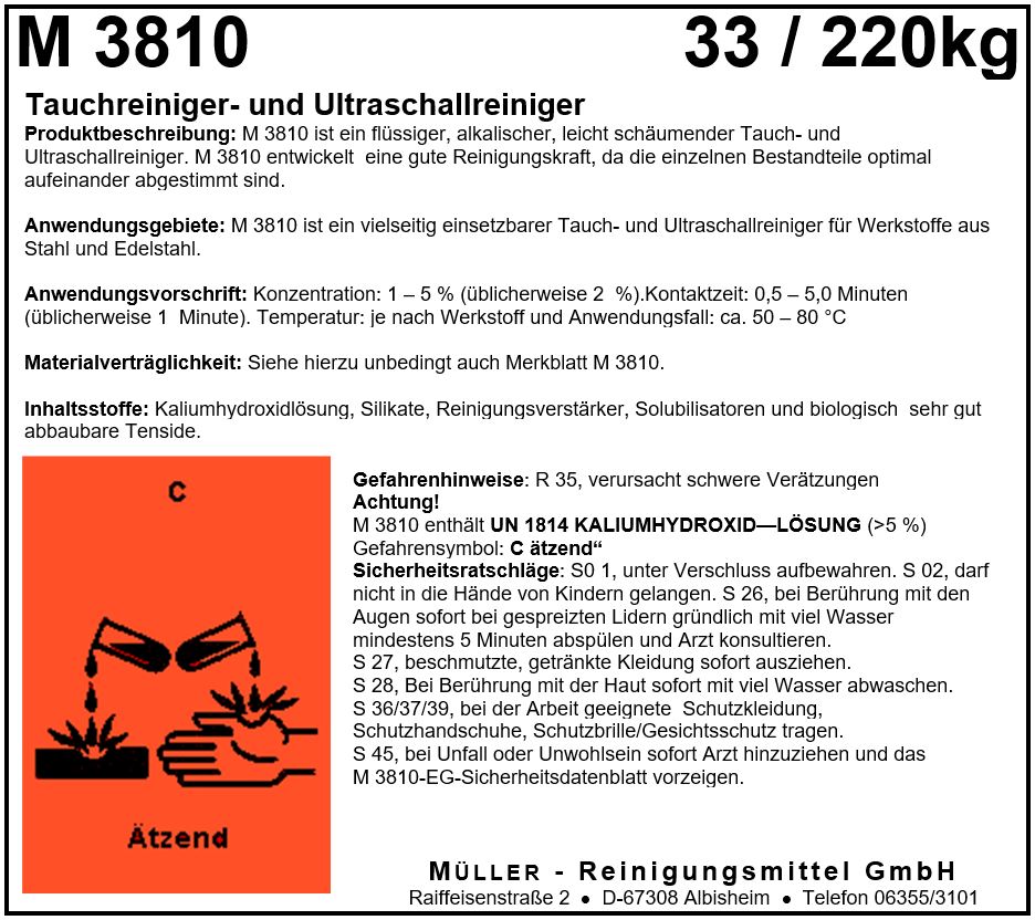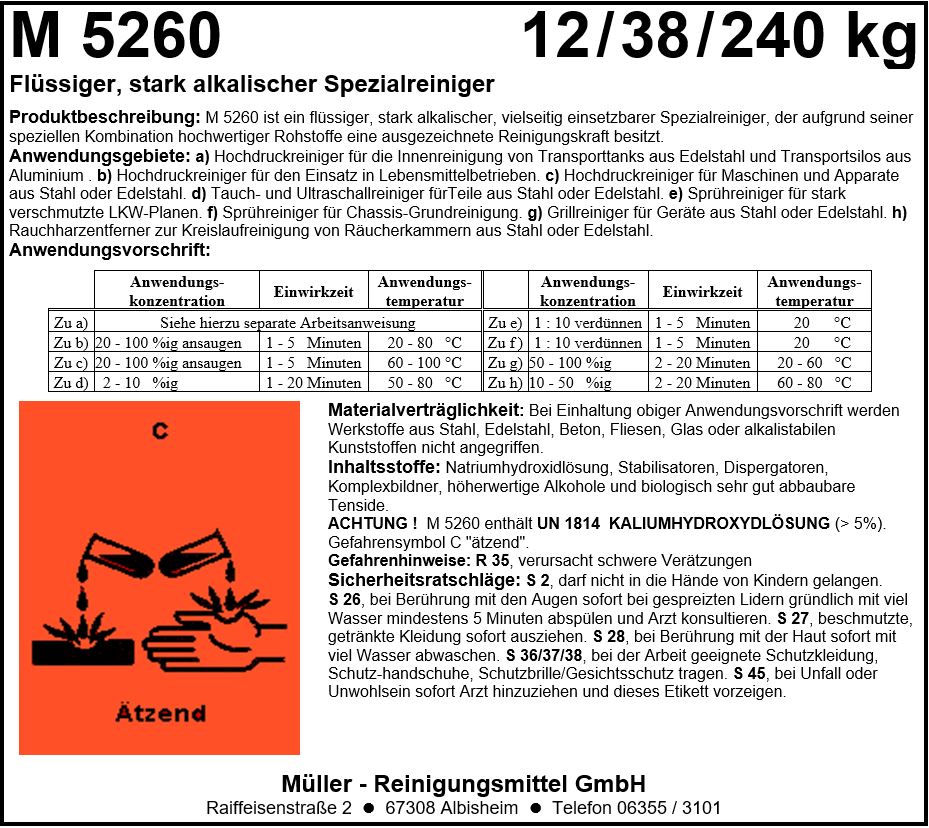 M 1122 ist garantiert frei von chlorierten und fluorierten Kohlenwasserstoffen. Er ist nicht als „mindergiftig“ oder „giftig“ zu kennzeichnen. Lediglich aufgrund des Gehaltes an Kaliumhydroxidlösung als Alkalitätsträger ist M 1122 als „ätzend“ zu deklarieren. M 1122 besitzt einen leichten, charakteristischen Geruch.