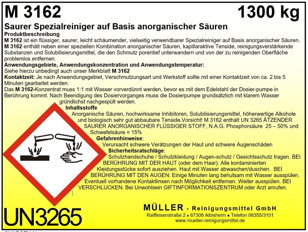 M 1122 ist ein dickflüssiger, alkalischer, manueller Spezialreiniger zur Entfernung problematischer Rückstände. Aufgrund seiner speziellen Kombination hochwirksamer Reinigungskomponenten ist M 1122 in der Lage, auch kritische und problematische Verunreinigungen innerhalb weniger Minuten zu durchdringen, zu unterwandern und aufzuweichen.