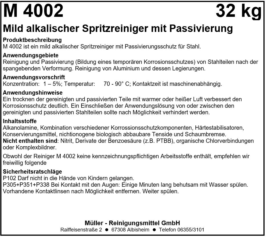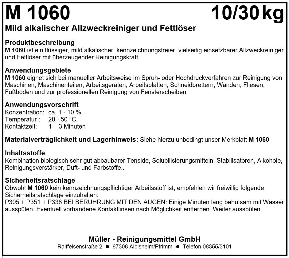 M 2710 ist ein flüssiges, mild saures, umweltfreundliches Reinigungsadditiv zur Natronlauge. Es bietet eine gute Wasserhärtestabilisierung und eine ausgezeichnete Reinigungskraft für Glasoberflächen. M 2710 entwickelt keinen störenden Schaum und zusammen mit Natronlauge erzielt es ein sehr hohes Schmutztragevermögen, was eine hohe Wirtschaftlichkeit gewährleistet.