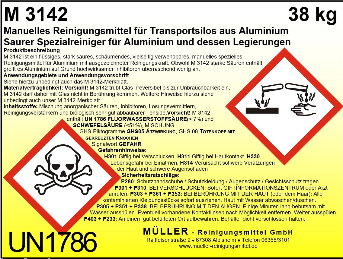M 3142 ist ein flüssiger, stark saurer, schäumender Spezialreiniger, der speziell für die manuelle Reinigung von Aluminiumoberflächen entwickelt wurde.