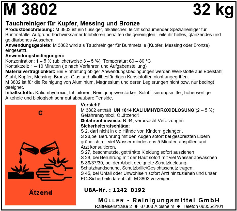 M 3146 ist ein flüssiger, stark saurer, schäumender Spezialreiniger, der speziell für die manuelle Reinigung von Aluminiumoberflächen entwickelt wurde.