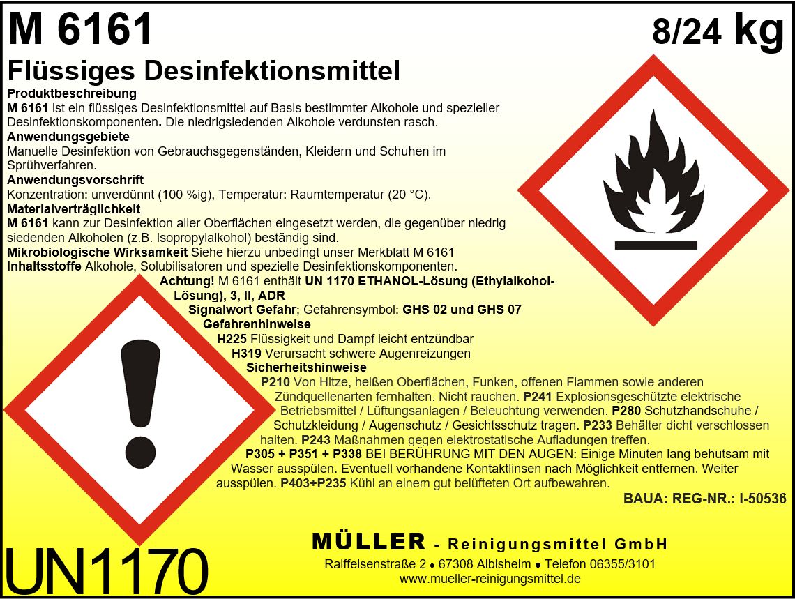 M 6161 ist ein flüssiges, im Neutralbereich liegendes, leicht verflüchtendes und schnell trocknendes Desinfektionsmittel auf Basis bestimmter Alkohole und spezieller Desinfektionskomponenten.