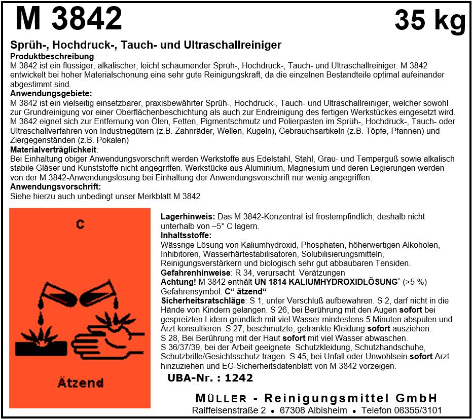 M 8280 ist ein hochwertiger, praktisch wasserfreier, flüssiger, im Neutralbereich liegender Spezialreiniger mit ausgezeichneter Reinigungskraft für bestimmte Anwendungsgebiete. M 8280 kann dort eingesetzt werden, wo herkömmliche Lösungsmittel (z.B. Aceton) die gestellten Reinigungsaufgaben nicht erfüllen.